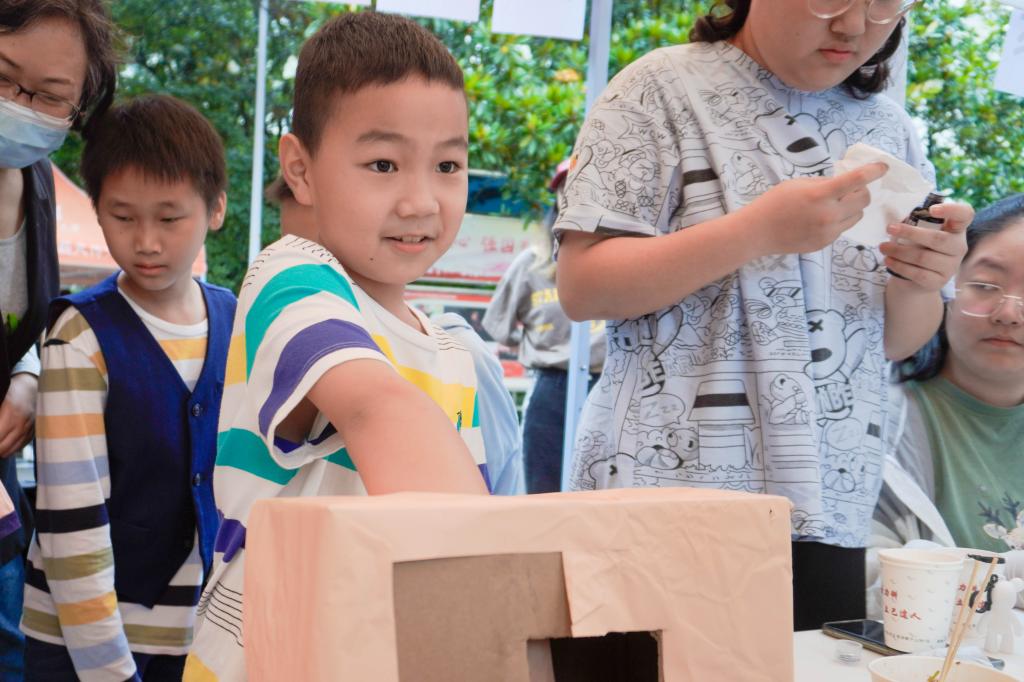5月28日,荟五小广场上热闹非凡,“男生女生向前冲”活动拉开了心理健康活动的序幕。该活动由三个闯关游戏组成:盒里乾坤、乱世佳人、共享脑洞。在“盒里乾坤”中,学生们通过摸盲盒猜动物的游戏,体验到了在未知中探索的新奇感受。接着,在“乱世佳人”的抽卡体验人生的环节中,学生们更加具体地体验了人生的不确定性。最后,在“共享脑洞”的游戏中,参与者通过一句话接力,为小说带来了多种可能性的结局。